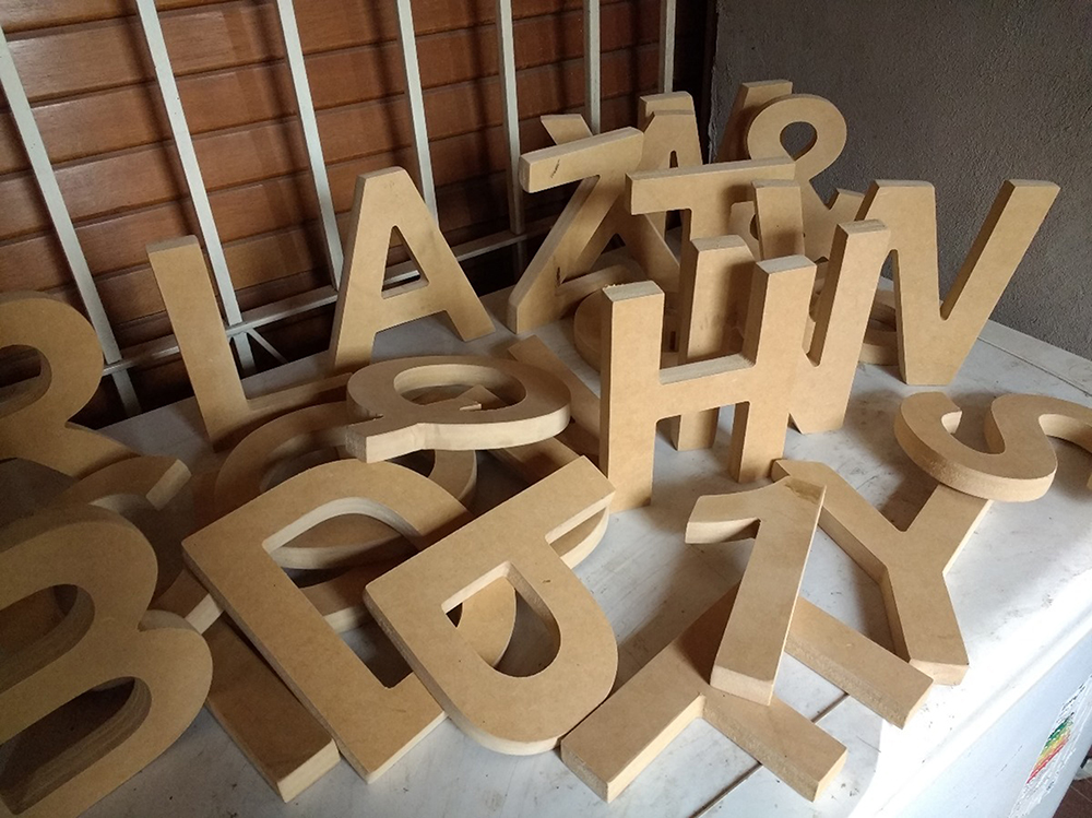 Pueden fabricarse mediante planchas recortadas en diferentes materiales tales como PVC, acrílico, aluminio o madera. Se pueden iluminar con sistemas LED, consiguiendo efectos espectaculares de iluminación frontal o con luz indirecta a la fachada.